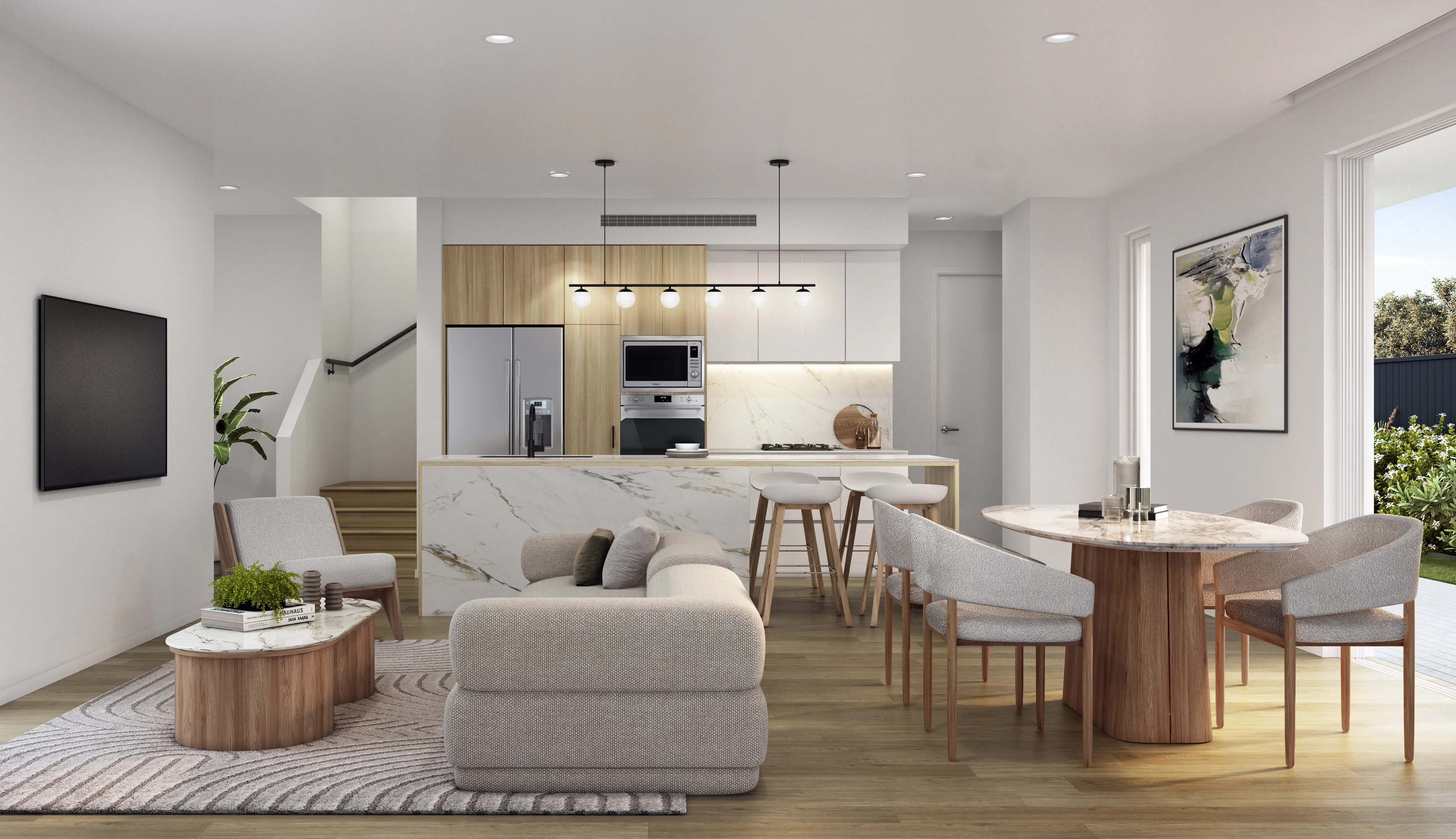 Avisa is a residential development comprising of spacious three bedroom townhouses, located at the beachside Central Coast scenic suburb of Umina Beach. Lexis Design succeeded in delivering an excellent design result, inspired by the beautiful ocean surroundings, within the budget.