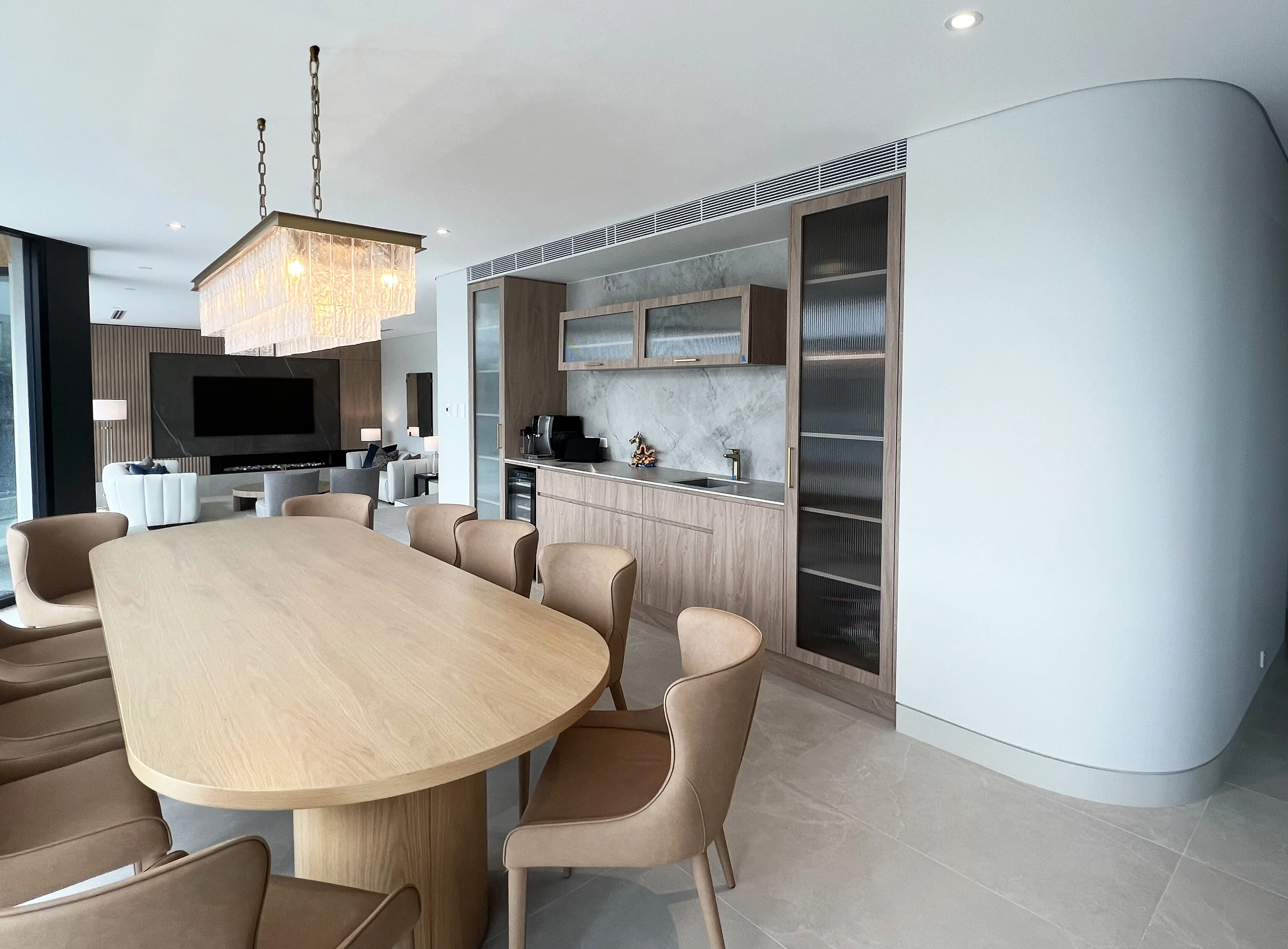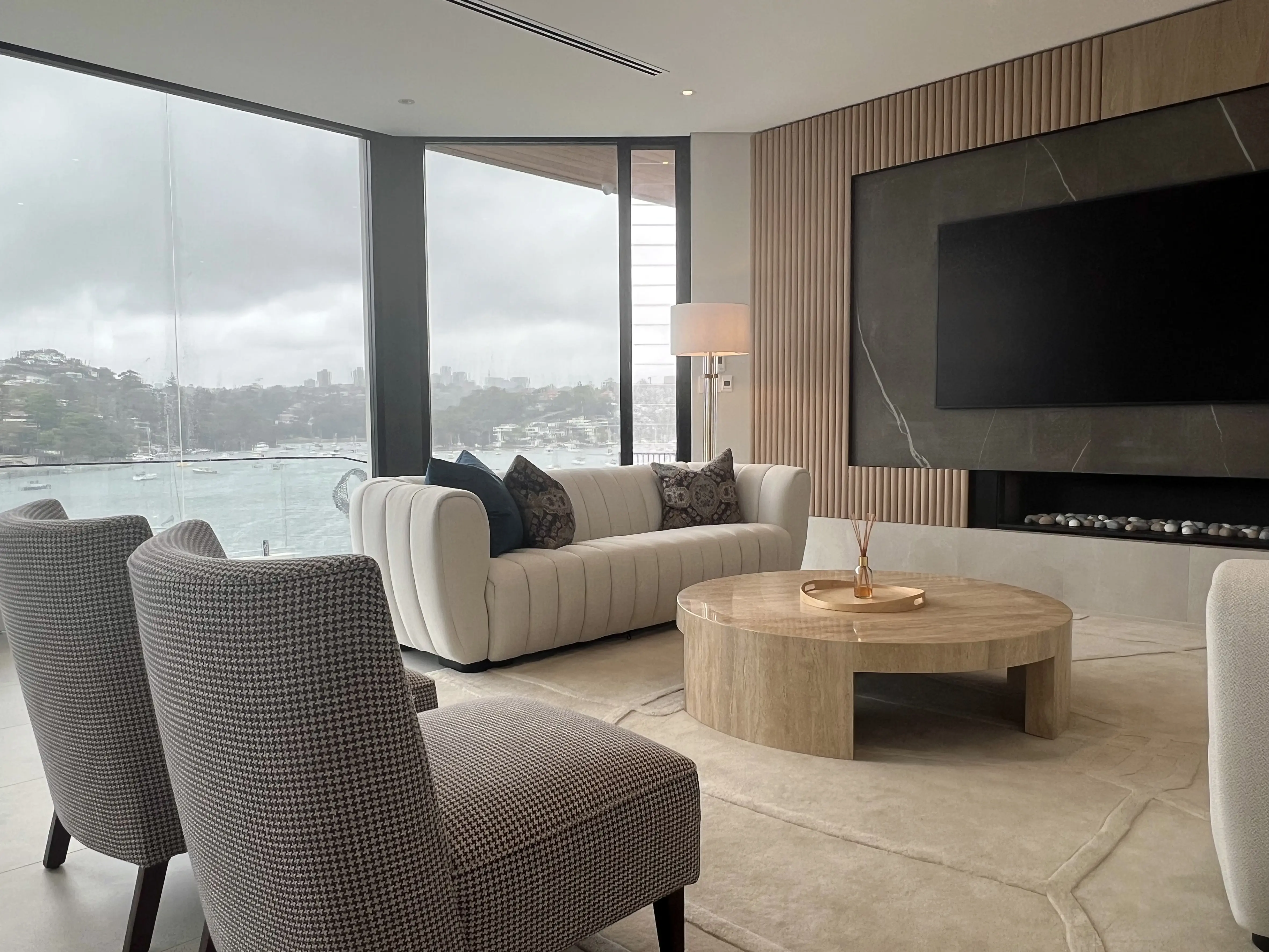 Lexis Design was commissioned to design the interiors of this magnificent home occupying a waterfront position with 180 degree views across the middle harbour. The home is built on a 876sqm block with a casual jetty and is located in an exclusive cul-de-sac.